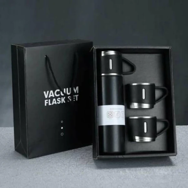 Steel Vacuum Flask Set With 3 Stainless Steel Cups Combo – 500m , Black, Bottle
