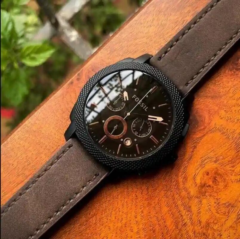 Fossil Men’s Analog Chronograph Watch – Brown Leather Strap | Black Dial