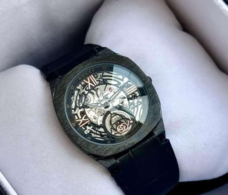 Authentic Gucci skeleton dial with mechanical detailing