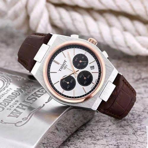 Tissot PRX Chronograph – Silver Dial with Rose Gold Accents