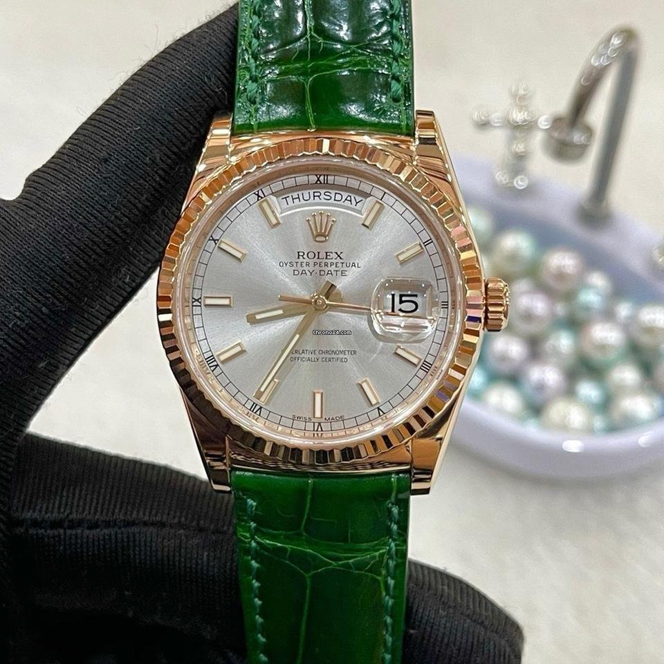 Strap: Premium green alligator leather with yellow gold Rolex Crownclasp